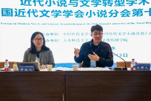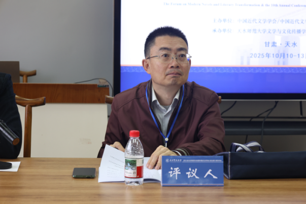 第一场分组研讨“近代小说与文学转型”在雷达文学馆举行,由天水师范大学王贵禄教授主持,中国社会科学院大学文学院吴泽泉副教授评议。