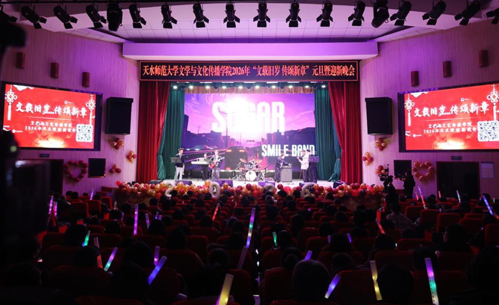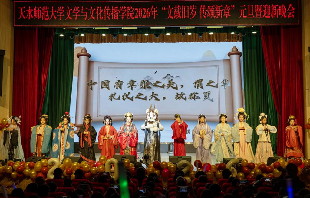 12月20日,文学与文化传播学院“文载旧岁 传颂新章”2026年元旦暨迎新晚会在天水师范大学大礼堂隆重举行。