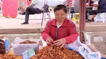 除了田间采摘,李清贺还主动参与到活动的多项配套工作中。在杏品展销区,他向来往游客热情介绍李广杏的特色:“这是我们金佛寺镇的李广杏,果肉饱满、酸甜多汁,是当地的招牌水果呢!”他还协助工作人员进行订单登记、打包发货,忙得不亦乐乎。他用清晰流利的普通话向游客们推荐李广杏,分享采摘趣事,助力拓宽销售渠道。