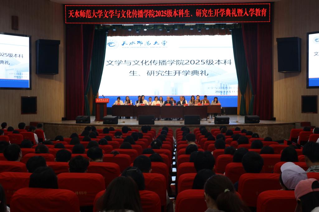 金秋送爽,翰墨飘香。9月11日,天水师范大学文学与文化传播学院2025级新生开学典礼在学校大礼堂隆重举行。学院领导班子成员、新生班主任、研究生秘书、辅导员及2025级全体研究生、本科生齐聚一堂,共同见证新“文传人”开启人生新篇章。